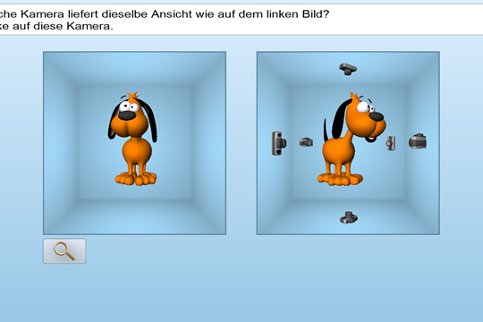 1. A perspektívaváltási feladatokban a kliens a képernyő jobb oldalán, kamerákkal körülvéve látja a tárgyat. Ki kell találnia, hogy melyik kamerával készült a képernyő bal oldalán látható kép.